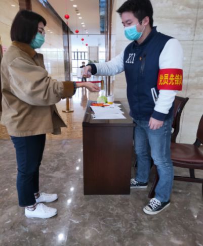 一夫當關(guān),萬“疫”莫開。在上班高峰期,守崗黨員以高度的責任感和使命感,在總部專用電梯口、各分部大門積極輪班值守,他們戴黨徽、別袖章、主動亮身份,手拿測溫槍、筆記體溫表,用實際行動堅決守好安全門,主動站好防控崗,有力確保了職工健康安全。