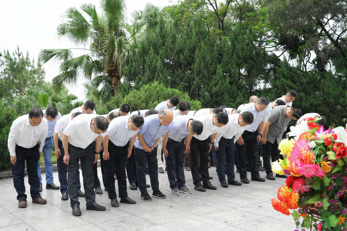 活動現(xiàn)場,公司黨員干部手持白菊花,面向林祥謙烈士陵墓列隊肅立,通過敬獻花籃與鮮花、佇立鞠躬,向中國工人運動的先驅(qū)者、有史可查的第一位中國共產(chǎn)黨黨員烈士,默哀致敬,表達對革命烈士的崇高敬意和深切悼念。