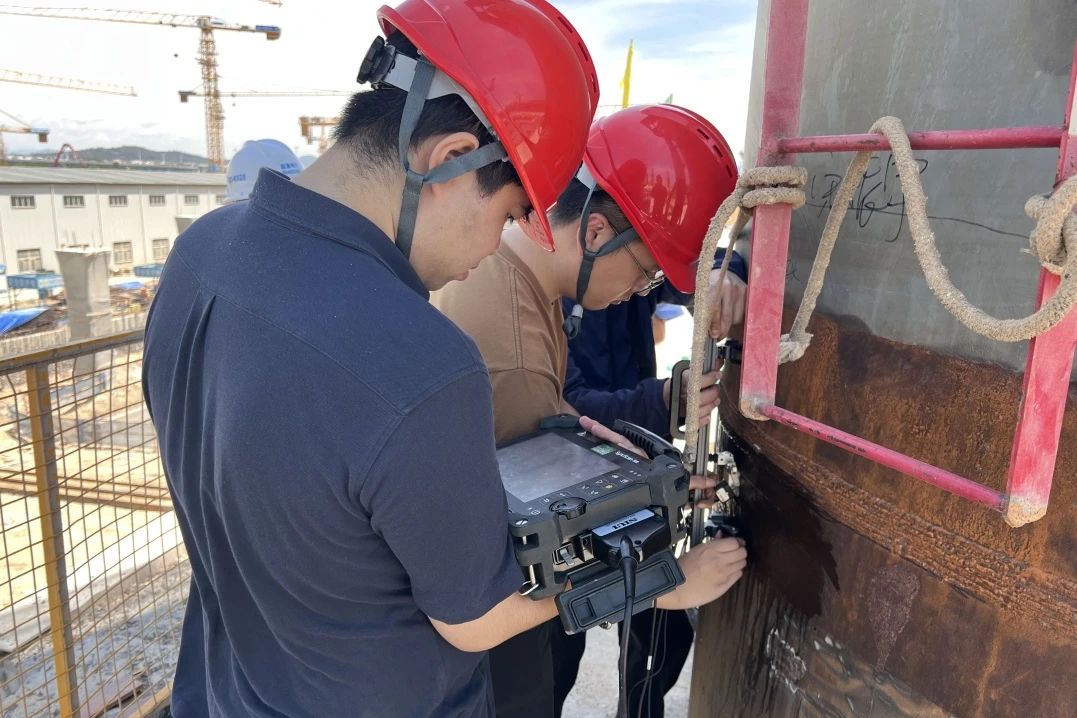 相控陣超聲檢測(cè)技術(shù)相比于傳統(tǒng)超聲檢測(cè)技術(shù),具有靈敏度和分辨率更高,缺陷顯示形象直觀,檢測(cè)結(jié)果可記錄,掃查覆蓋范圍大,掃查效率高等眾多優(yōu)點(diǎn)。福建建科院積極推進(jìn)相控陣超聲檢測(cè)技術(shù)的應(yīng)用研究,并在福州長(zhǎng)樂國(guó)際機(jī)場(chǎng)二期航站區(qū)工程等項(xiàng)目中實(shí)現(xiàn)應(yīng)用,取得了良好的試驗(yàn)效果。