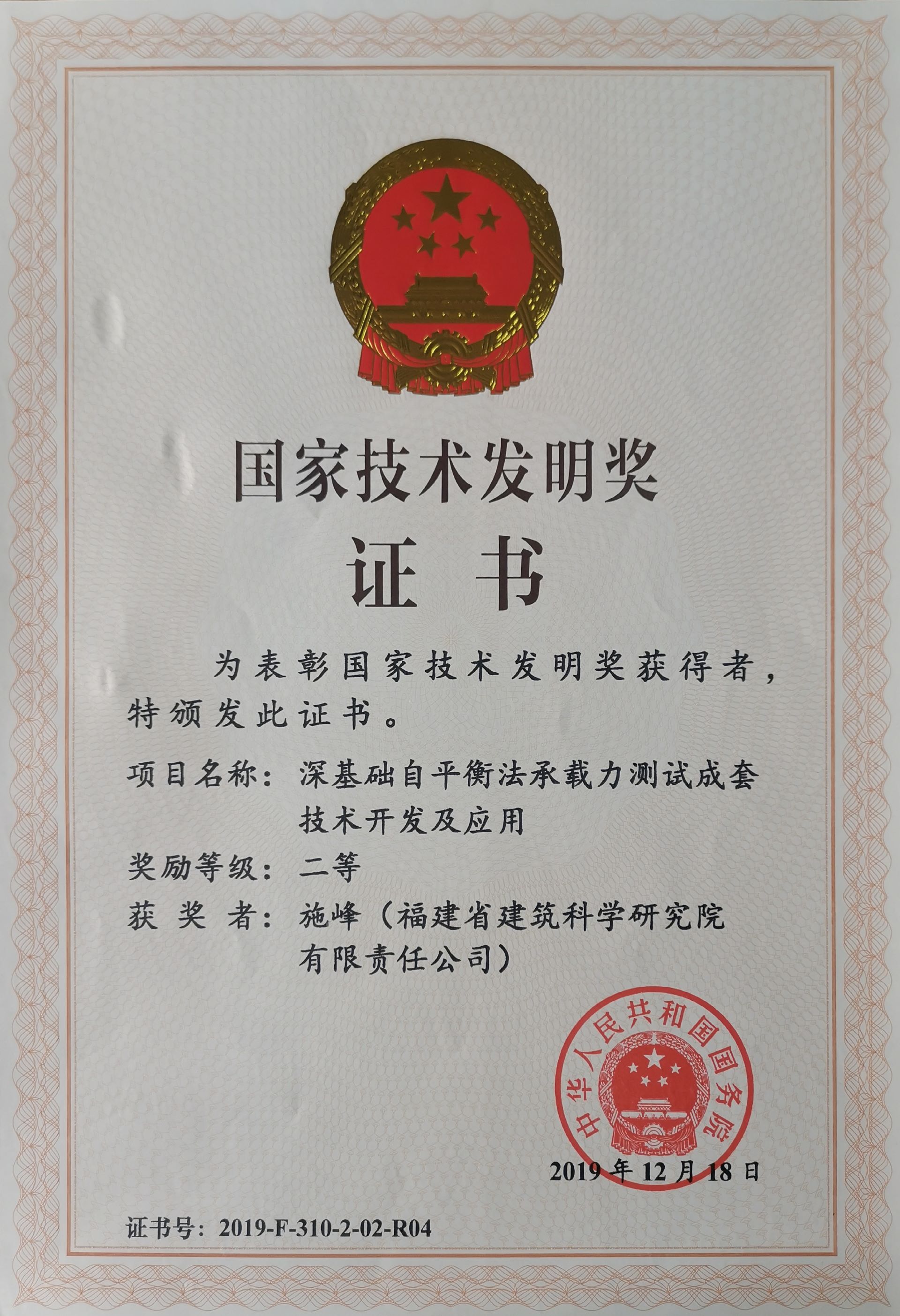 2020年1月10日,中共中央、國務(wù)院在北京人民大會(huì)堂召開2019年度國家科學(xué)技術(shù)獎(jiǎng)勵(lì)大會(huì)。我司與東南大學(xué)合作的“深基礎(chǔ)自平衡法承載力測試成套技術(shù)開發(fā)及應(yīng)用”項(xiàng)目喜獲國家技術(shù)發(fā)明獎(jiǎng)二等獎(jiǎng),這是我司首次獲得國家級(jí)科學(xué)技術(shù)獎(jiǎng)項(xiàng)。