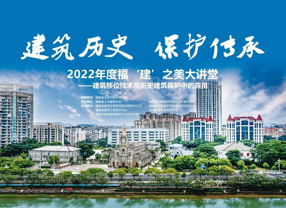 6月10日下午,由福建省建筑科學(xué)研究院有限責(zé)任公司(以下簡稱“福建建科院”)為主承辦的2022年度?!ā来笾v堂系列活動(dòng)第七場“建筑歷史 保護(hù)傳承——建筑移位技術(shù)在歷史建筑保護(hù)中的應(yīng)用”主題講座在福州三坊七巷全國優(yōu)秀建筑設(shè)計(jì)展示館(郎官巷23號(hào))順利舉行。
