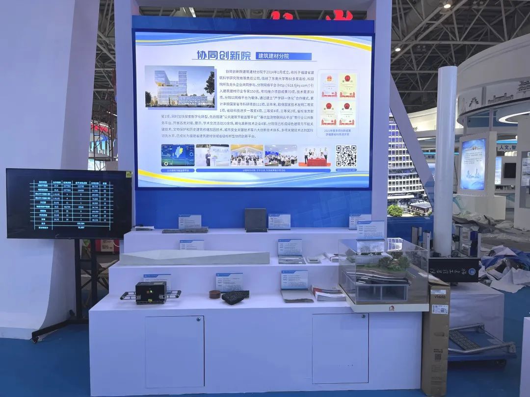 在協(xié)同創(chuàng)新院展區(qū),福建建科院帶領(lǐng)建筑建材分院多家參與單位,以“安全智能 綠色科技”為主題,展示了分院在綠色建材、無損檢測(cè)、智能檢測(cè)等領(lǐng)域的最新科技成果。
