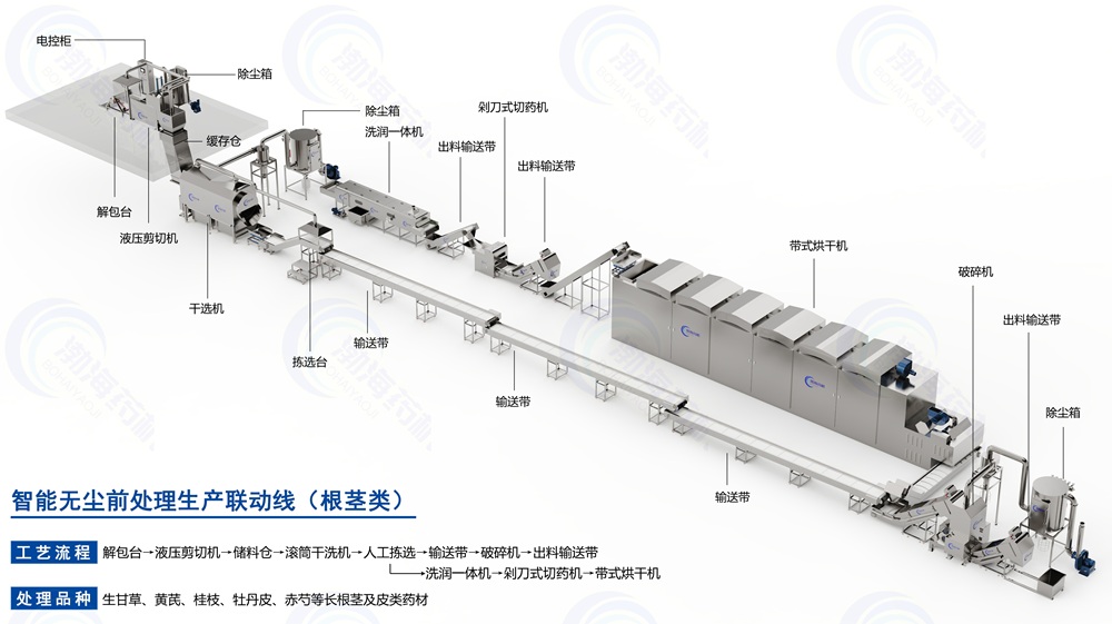 智能無塵前處理生產(chǎn)聯(lián)動(dòng)線(草葉類)