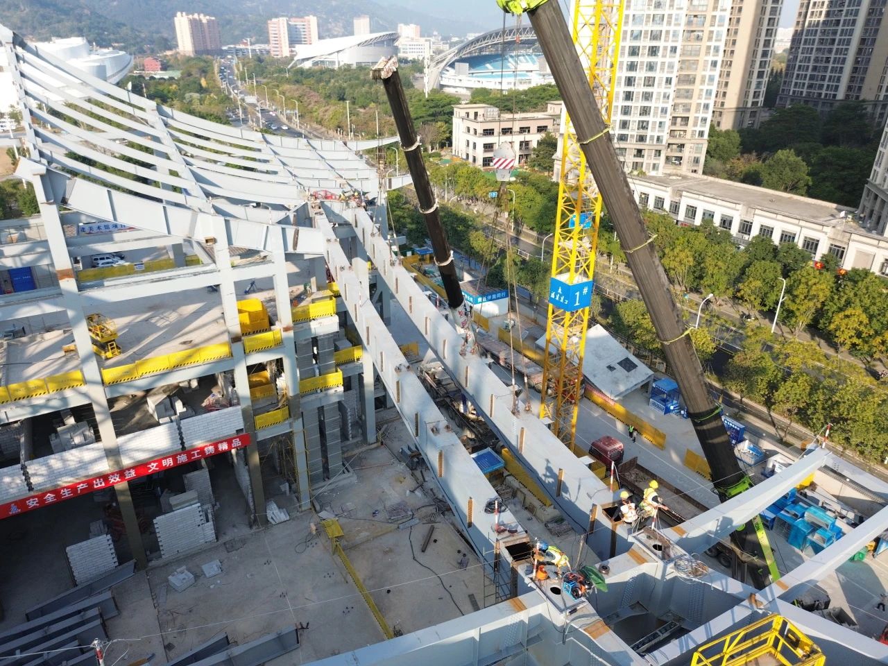 為確保項目鋼結構工程施工順利完成并保證施工質量,福建建科院權屬建研檢測公司嚴格按照檢測標準,全方位把控項目關鍵環(huán)節(jié)。從該項目鋼結構原材料檢測,到焊接質量無損檢測、防腐及防火涂層厚度檢測,技術人員在每個環(huán)節(jié)都精益求精,嚴格把控細節(jié)。憑借專業(yè)嚴謹的檢測工作,助力兩條大跨度鋼結構箱型屋蓋梁安裝達到合格標準,順利完成鋼結構工程施工。這一重要里程碑的完成,為項目整體進度奠定了堅實基礎,更以"開門紅"的優(yōu)異成績,為打造城市文化新地標注入強勁動能。