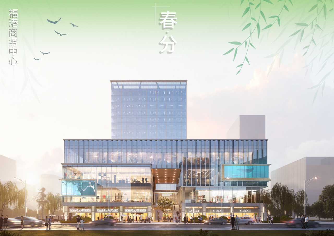 該項目位于福州市長樂濱海新城CBD核心區(qū),坐擁良好的新區(qū)上位資源及周邊景觀資源,項目總建筑面積95886.07㎡,眾合院采用了對稱的玻璃幕墻立面設(shè)計,突出中心入口,引導(dǎo)人流進入內(nèi)部空間,并通過底層架空、下沉廣場的引入,再結(jié)合地鐵站,激活軌道交通商業(yè),形成一處開放型商辦綜合體。